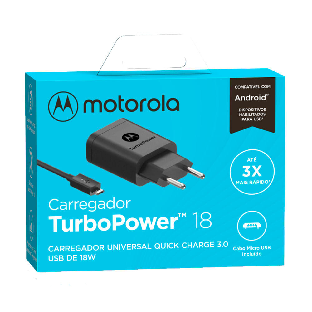Carregador Motorola Turbo Power 18 W C/ Cabo Micro Usb Orig.